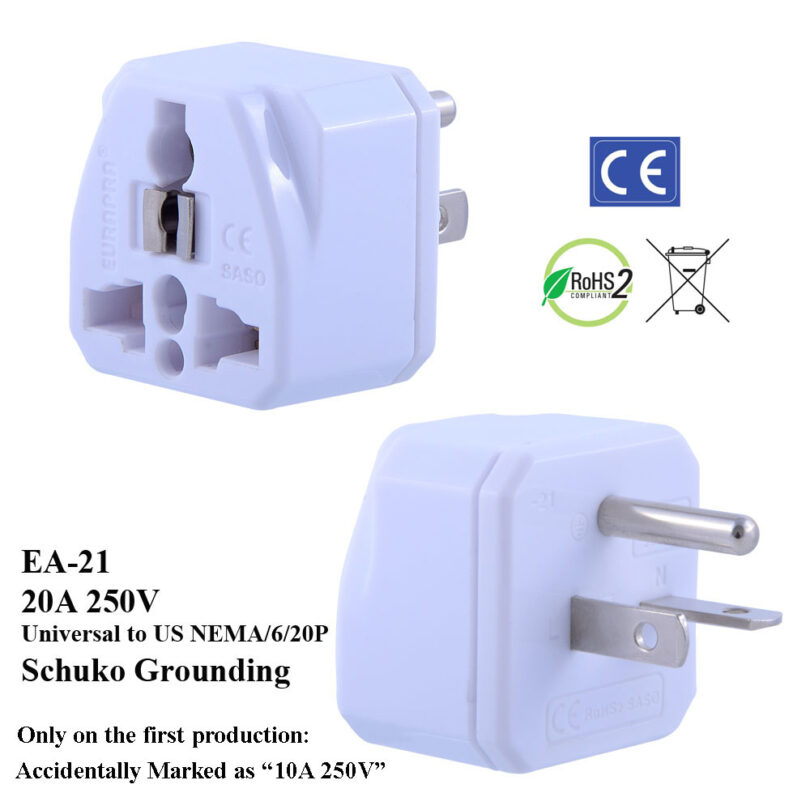 EA-21_White / WA-21, NEMA 6-20 US Plug Adapter with Schuko Ground
